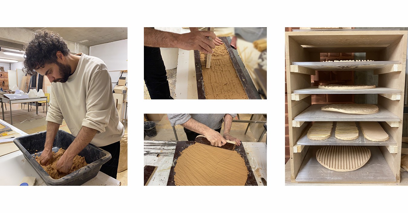 L’objectif : concevoir des dispositifs à partir de matériaux de réemploi, notamment de la terre crue issue de carrière et de la cellulose recyclée ; pour créer un nouveau composite local, sain, et à faible impact. Nous avons d’abord expérimenté ce matériau en laboratoire, avant de passer à deux phases-clés : l’idéation et le prototypage.